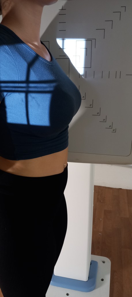 Colocando en dedo en la escotadura yugular, éste debe verse en la sombra del bucky.
