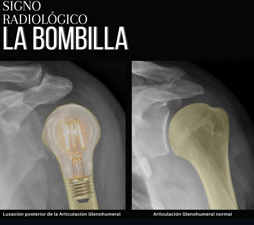 El signo de la bombilla se refiere al aspecto anormal de la radiografía AP de la cabeza humeral en la luxación posterior del hombro.