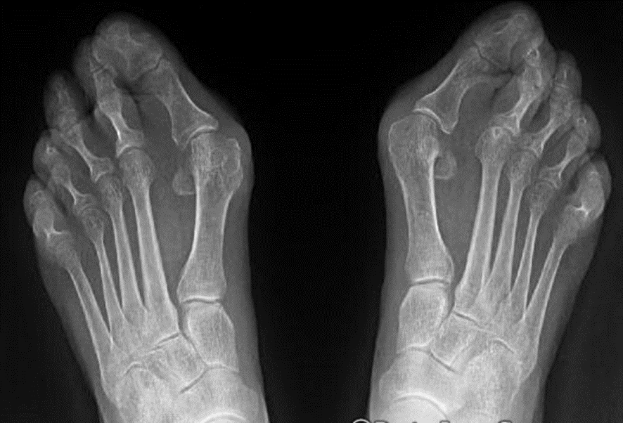 El hallux valgus es una deformidad del primer dedo del pie (hallux), que se desvía hacia fuera, es decir en valgo. El bulto que se nota en el borde interno del pie es conocido popularmente como juanete. Es una de las patologías del pie más frecuentes. Sus causas son multifactoriales, siendo el calzado de punta estrecha el más determinante cuando existe una predisposición en la anatomía del pie. Las enfermedades reumáticas como la artritis reumatoide favorecen la la aparición de grandes deformidades en el pie.